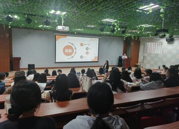 宣讲会上,九色鹿培训学校的李老师详细介绍了公司的企业文化、发展前景、岗位需求和招聘流程,在场的毕业生们对英语教育行业的发展现状和前景有较为清晰的认识。
