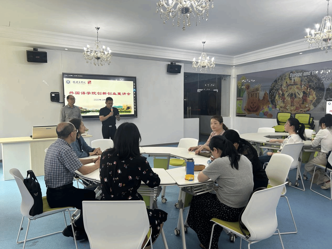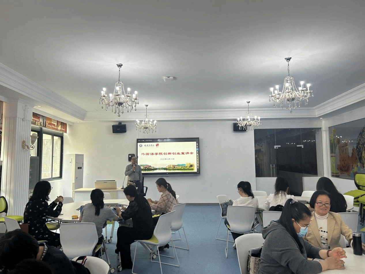 吴思锋主任结合自身丰富的双创工作经验,对国家及学校创新创业相关政策文件进行全面解读,重点梳理了政策支持重点与申报要点。他立足我院外语专业特色,深入分析当前外语专业在双创工作中面临的痛点、难点,精准挖掘外语专业在跨文化交流、国际服务、语言服务等领域的独特优势,围绕“外语+”融合发展模式,就如何找准项目定位、夯实项目内容、提升学生双创能力等关键问题,给出具体可行的指导建议。