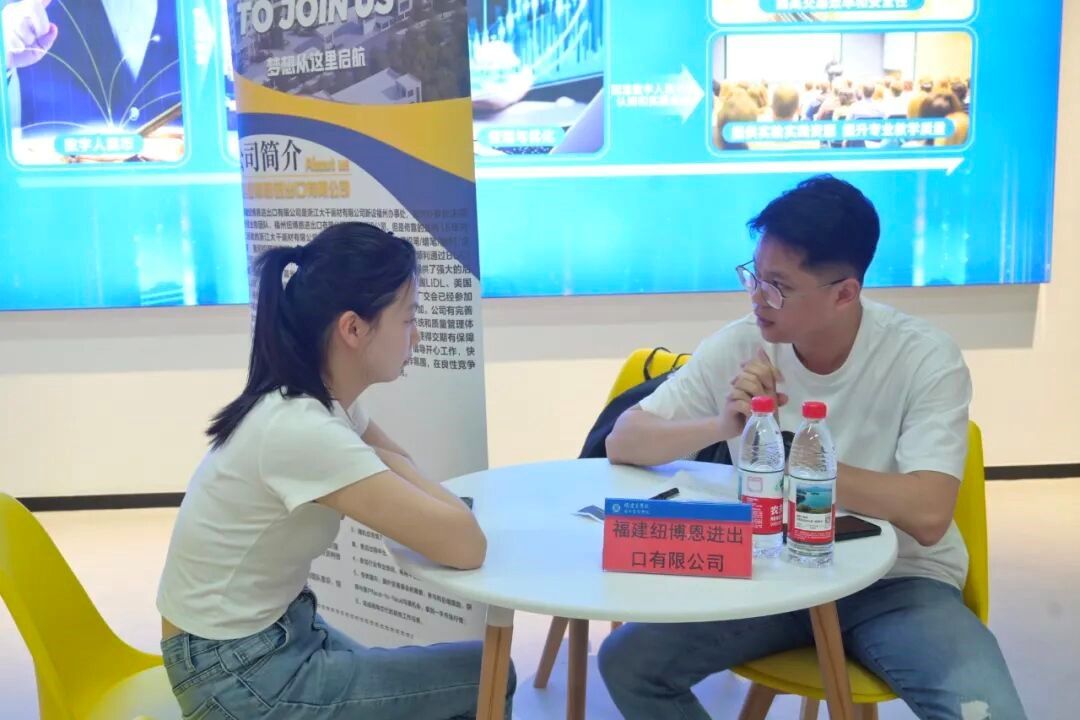 5月14日下午,由yl23411永利集团和国际经贸学院联合举办的“筑梦青春,职引未来”2025届毕业生夏季校园招聘会在马尾校区数字商务实验中心顺利举行。本次招聘会吸引了纵腾集团、福建康鸿生物科技有限公司、福建巨纸包装有限公司等十余家企业参与,涵盖外贸、电商、文化传媒、生物科技等多个行业领域,为毕业生提供了多样化的就业机会。
