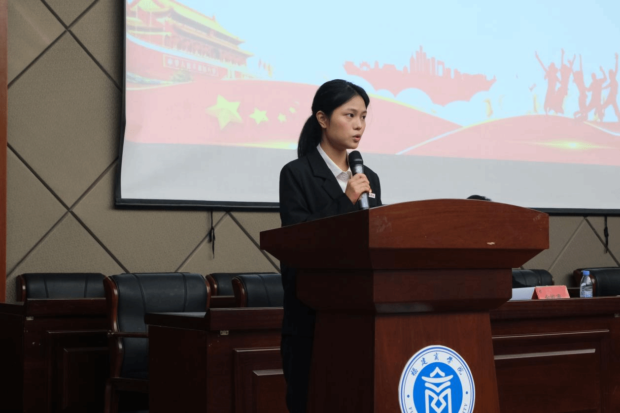 图3学生会主席团成员齐炜涵做学生会工作报告